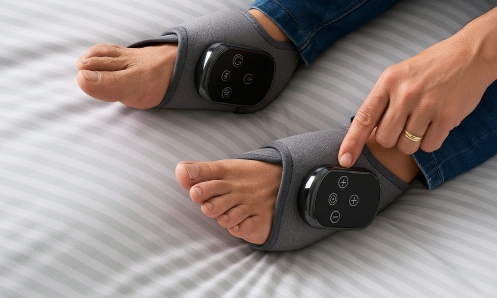 “Ik was sceptisch, maar zodra ik dit om mijn voeten deed, wist ik dat het anders was dan alles wat ik eerder had geprobeerd. De warmte verspreidde zich bijna onmiddellijk in mijn voetzolen. Toen kwam die zachte, pulserende massage, niet te veel, precies genoeg om mijn voeten eraan te herinneren dat ze nog leefden. En de compressie? Het is als een zachte knuffel voor je voeten. Ik gebruik NeuroCalm 15 minuten elke avond voor het slapen, en ik zweer dat ik beter slaap en wakker word met minder van die stekende pijn in mijn hielen.”